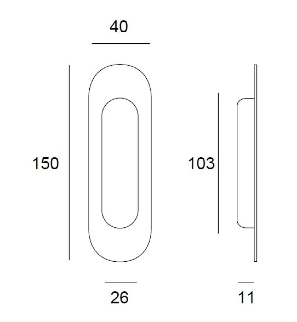 Ovale greep 150x40mm mat zwart